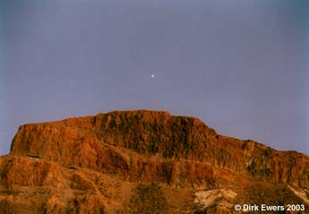Bild links: Marsaufgang in der Abenddämmerung über dem Guajara